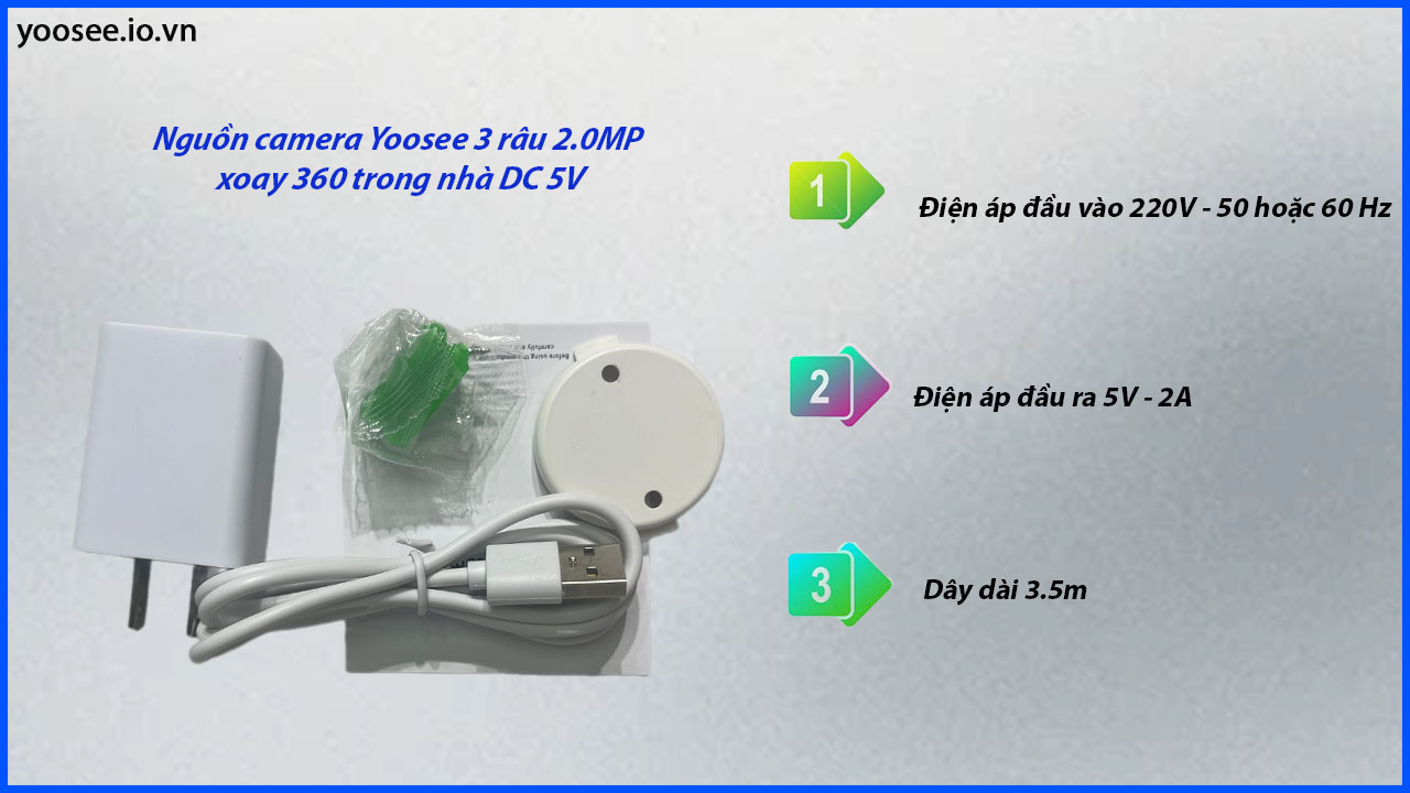 Nguồn camera Yoosee 3 râu 2.0MP xoay 360 là một phụ kiện cung cấp điện năng rất đáng tin cậy và phù hợp để cung cấp nguồn điện